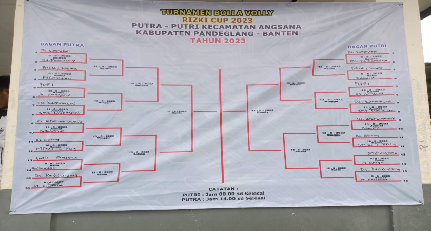 Pada tanggal 8 Agustus hingga 17 Agustus 2023, Kecamatan Angsana akan menjadi tuan rumah bagi turnamen voli ball yang sangat dinantikan, yaitu Rizki Cup 2023. Acara yang diikuti oleh berbagai tim voli ball di daerah tersebut ini menjadi ajang pertandingan yang penuh semangat dan prestasi.